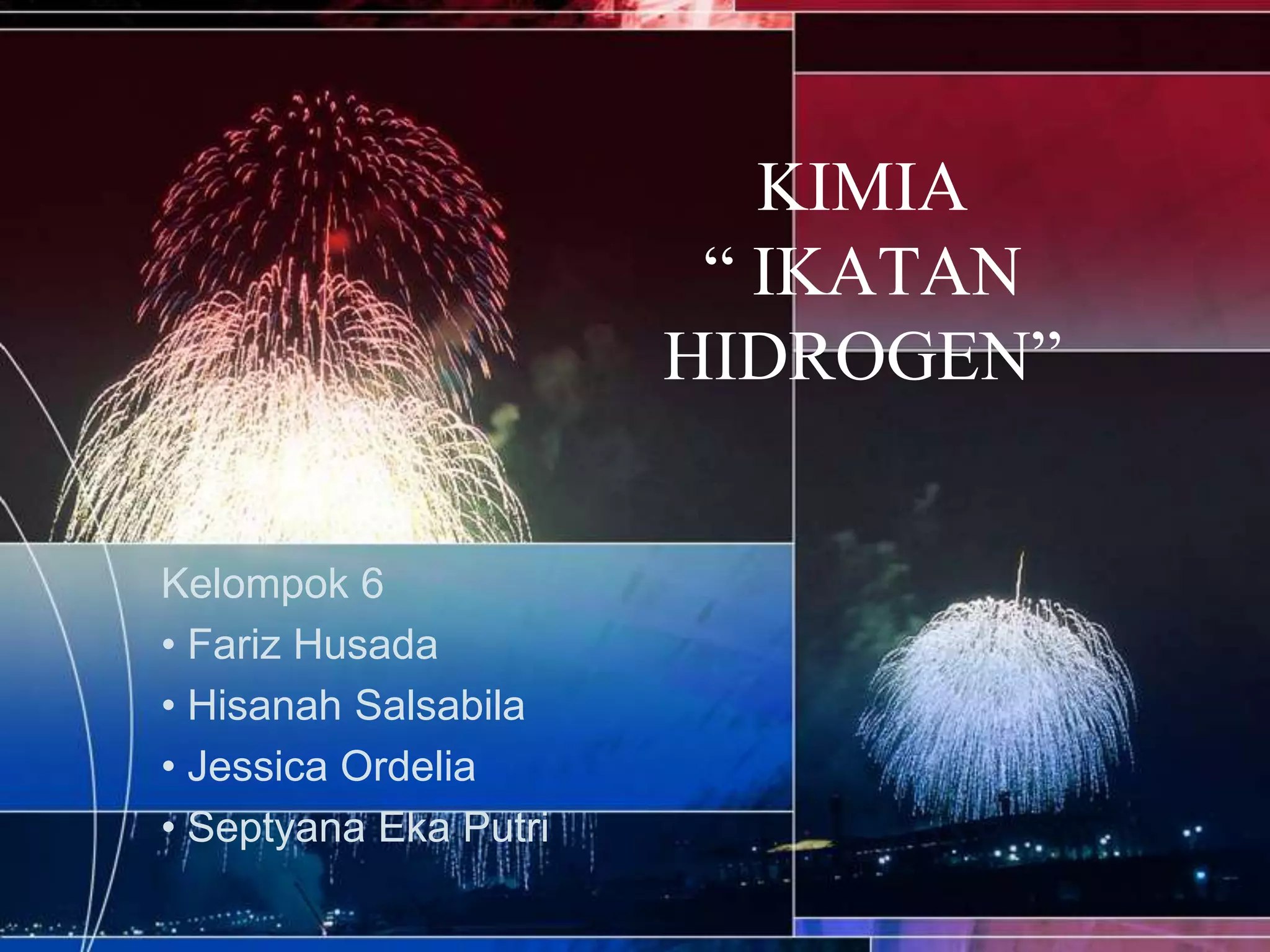 Dokumen ini membahas tentang ikatan hidrogen, yaitu gaya tarik antarmolekul yang terjadi antara dua muatan listrik parsial dengan polaritas berlawanan. Ikatan hidrogen terjadi ketika atom F, O, atau N memiliki pasangan elektron bebas yang berinteraksi dengan hidrogen molekul lain. Kekuatan ikatan dipengaruhi oleh perbedaan elektronegativitas atom-atom. Ikatan hidrogen mempengaruhi titik didih senyawa, semakin besar ikatan hidrogenny