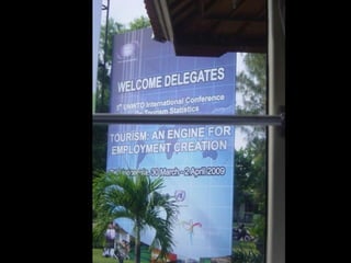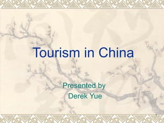 The document discusses tourism development in China. It describes how China shifted from being closed-door in the late 1940s-1970s to promoting tourism from the late 1970s onward to earn foreign exchange. Visitor arrivals grew from 7.7 million in 1981 to 130 million in 2007, while tourism receipts increased from $8 billion to $420 billion over the same period. The hotel industry has also expanded dramatically. China is now working to implement Tourism Satellite Accounts to better measure tourism's economic contribution and importance to the national economy.