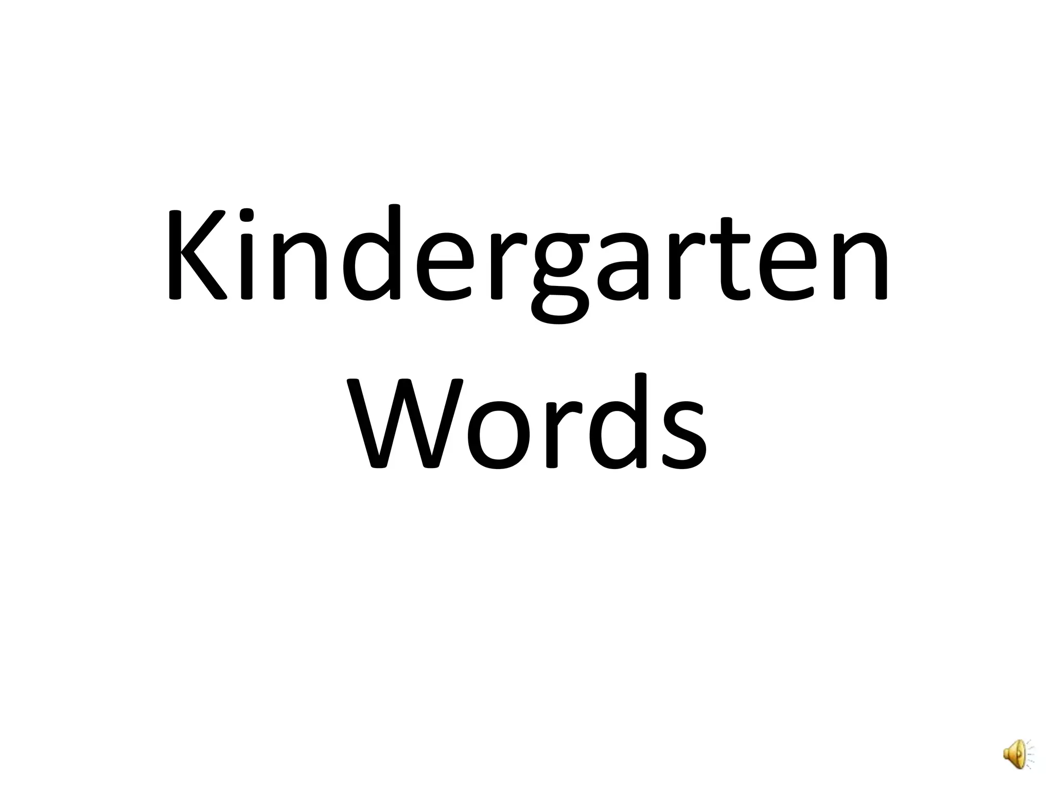 The document lists common words that kindergarten students are taught including articles, pronouns, verbs, adjectives, and colors. Some examples included are "a", "all", "am", "an", "and", "any", "as", "ask", "at", "are", "be", "big", "black", "blue", "boy", "brown", "but", "by", "can", "come", "did", "do", "find", "for", "four", "get", "girl", "go", "had", "have", "has", "her", "his", "him", "how", "he", "I", "if",