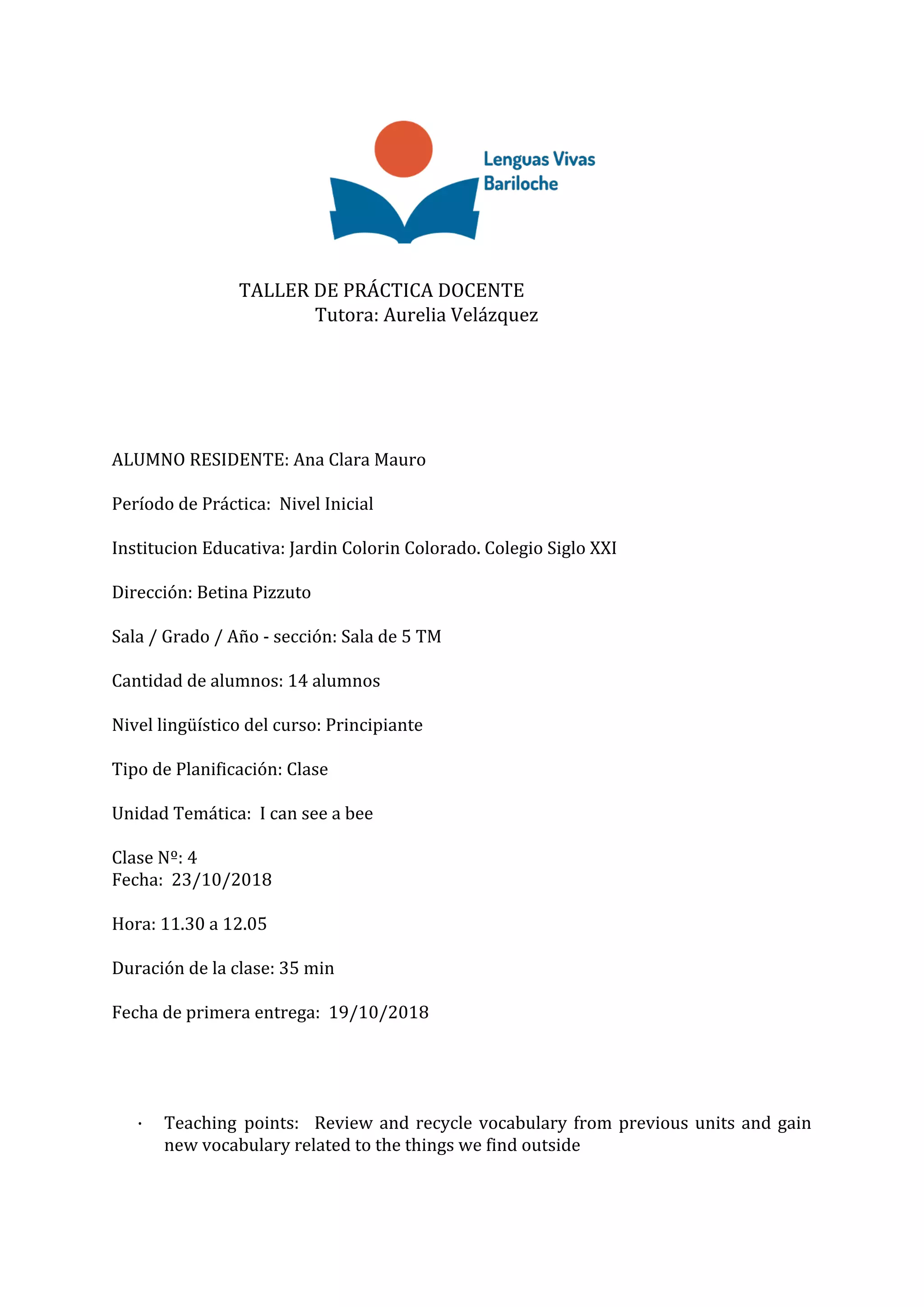 This document details a lesson plan for a beginner-level class of 14 students focusing on vocabulary related to outdoor items, specifically bees, leaves, and rocks. The lesson includes activities such as using flashcards, videos, and interactive games to help students identify and name these items while integrating listening and speaking skills. Assessment occurs through monitoring student participation and encouraging speaking practices throughout the class duration of 35 minutes.