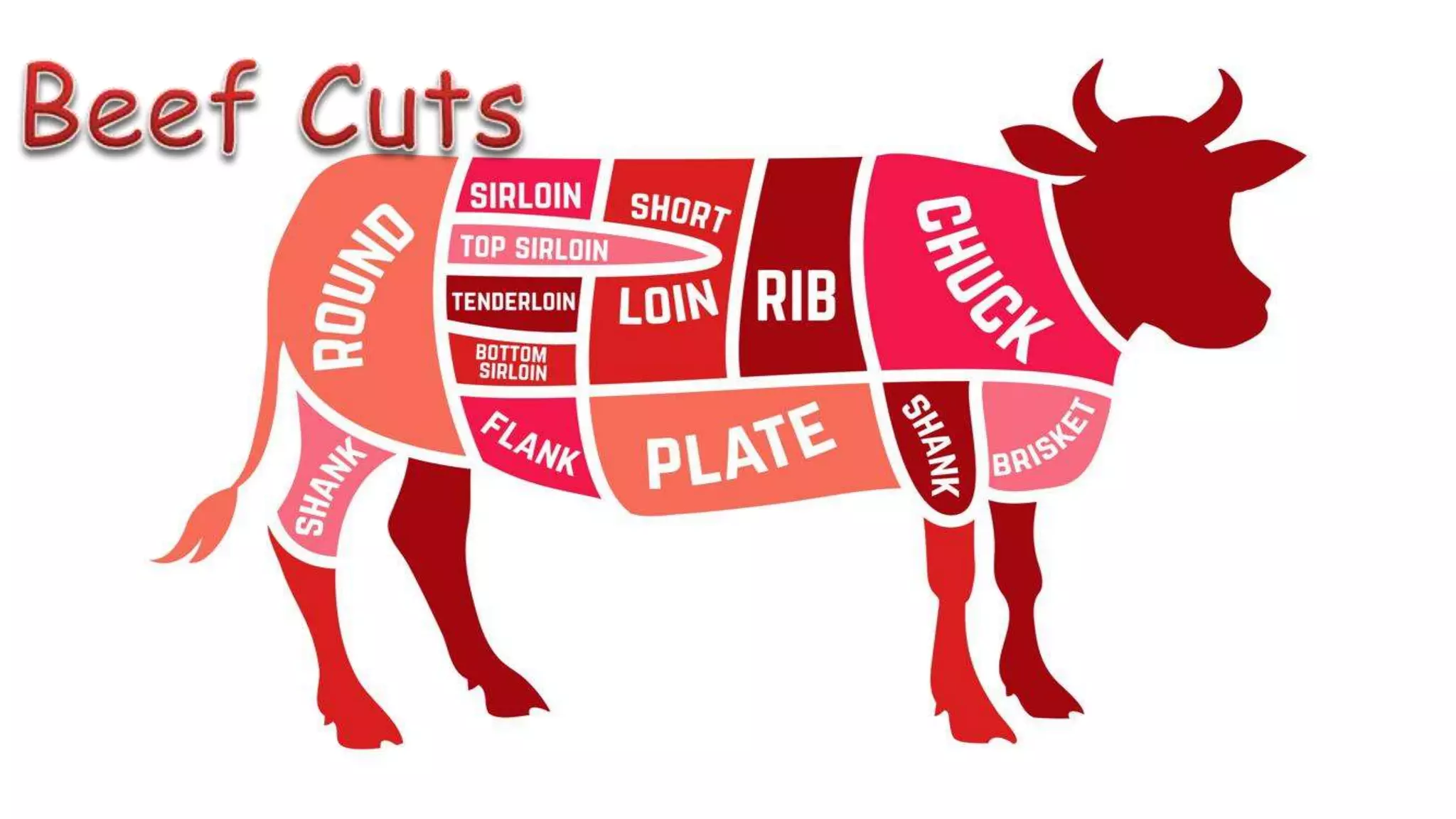 Meat is categorized into different types including pork, veal, beef, mutton, lamb, venison, chevon, and carabeef, each derived from specific animals. Fresh, chilled, frozen, and cured meats vary based on processing and preservation methods. Different cuts of meat have unique characteristics depending on muscle activity, with tender cuts requiring less cooking time compared to tough cuts, and poultry includes various classifications based on age and breed.