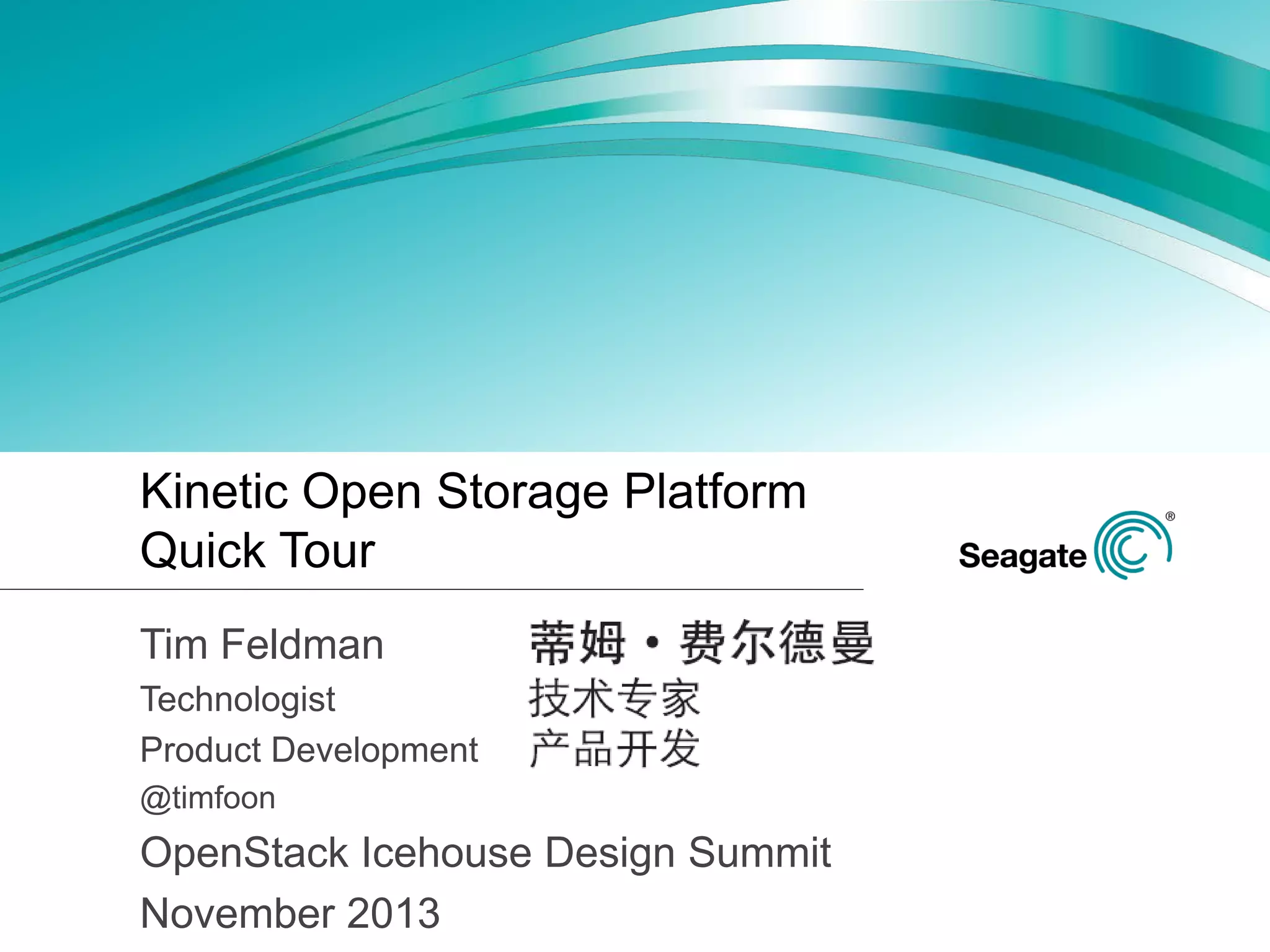 This document discusses workload generation, tracing and analysis of disk performance on three sample drives with varying input-output operations per second and data throughput. It also contains graphs showing the distribution of sequential read operations and data transfer by size of sequential run for a Swift benchmark storing 20MiB objects. Later, the document discusses disaggregated storage and introduces Seagate's Kinetic Open Storage platform as a new open storage solution that separates hardware and software. It provides an overview of the Kinetic device model and functional API for distributed object storage.