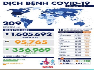 Tài liệu báo cáo về chẩn đoán và điều trị COVID-19 tại bệnh viện Nhiệt đới Trung ương, với dữ liệu từ 1225 bệnh nhân nghi ngờ và 131 bệnh nhân xác nhận dương tính. Các kết quả cho thấy tình trạng lâm sàng đáng chú ý với nhiều bệnh nhân có triệu chứng như ho khan và sốt, cùng với tổn thương phổi phổ biến trên hình ảnh chụp X-quang. Kinh nghiệm điều trị bao gồm việc sử dụng thuốc kháng virus và quản lý các bệnh nhân nặng một cách hiệu quả.