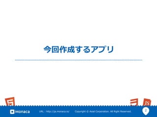 Copyright © Asial Corporation. All Right Reserved. Monacaによるアプリ開発
