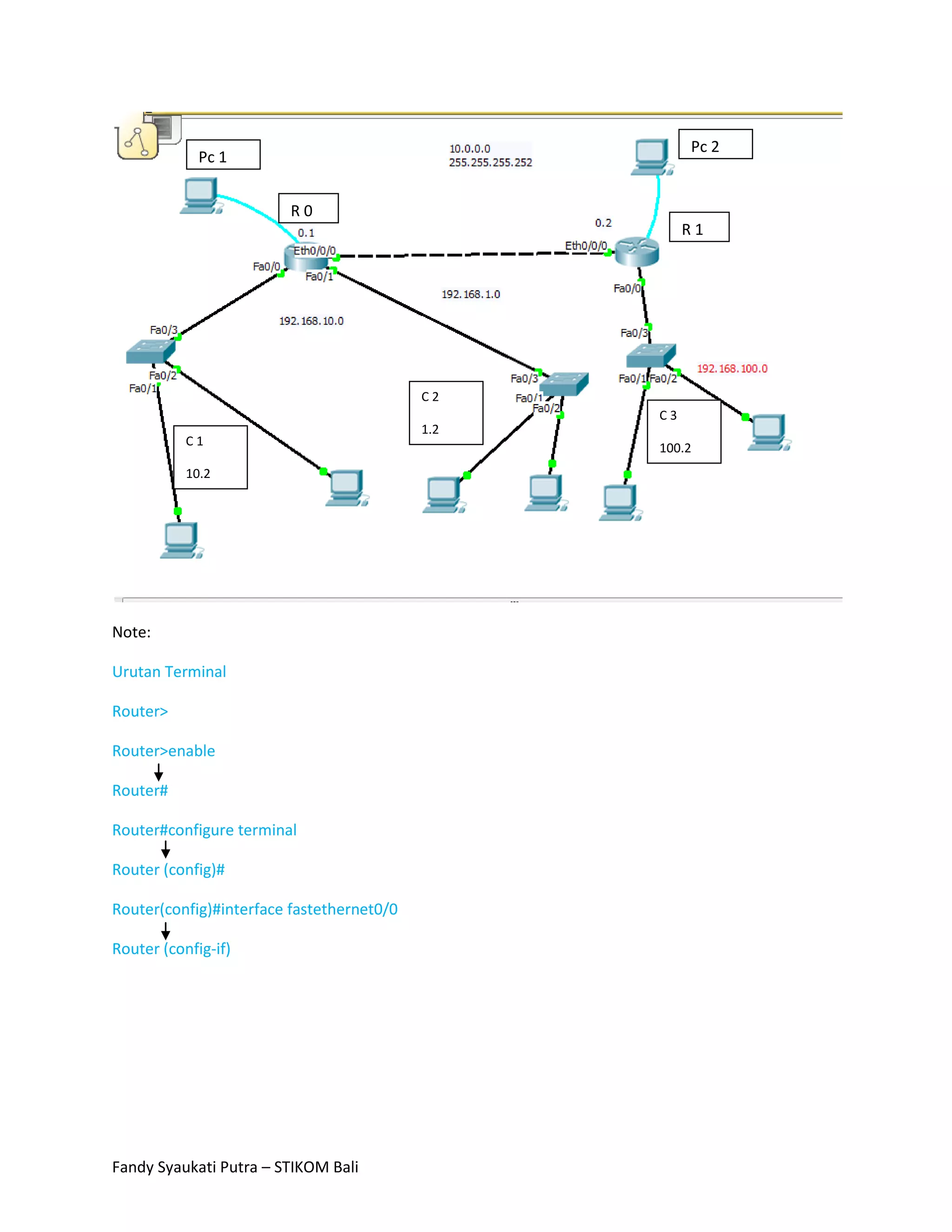Dokumen ini menjelaskan langkah-langkah konfigurasi jaringan menggunakan router, termasuk definisi IP dan pengaturan routing statis. Proses melibatkan akses ke terminal pada PC yang terhubung dengan router untuk memberikan IP address pada interface dan melakukan routing untuk jaringan. Hal-hal yang harus diperhatikan adalah mengikuti prosedur perintah yang ditentukan serta mengatur IP dan gateway sesuai dengan aturan yang telah ditetapkan.