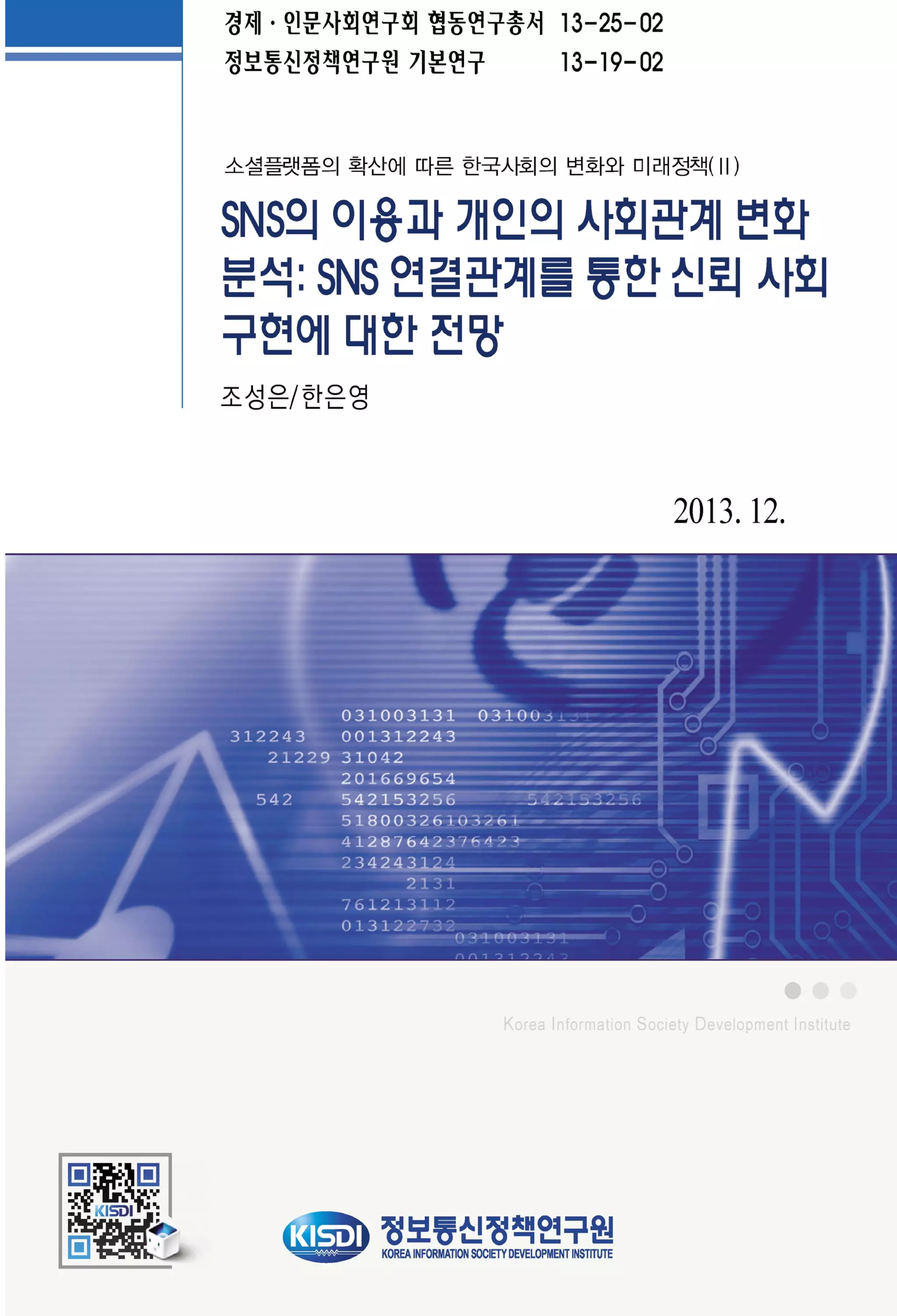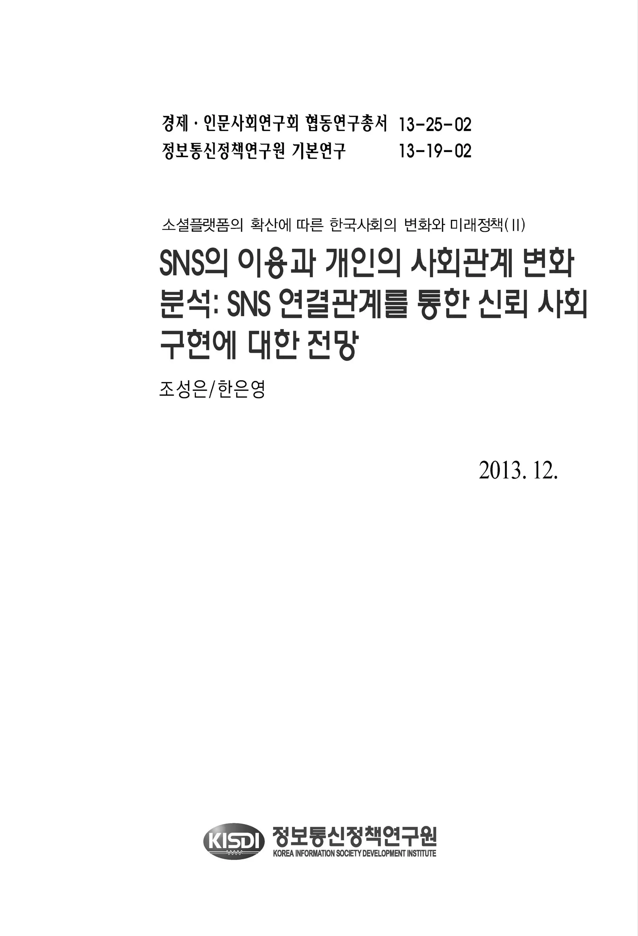 SNS의 이용과 개인의 사회관계 변화를 분석한 이 연구는 정보통신정책연구원의