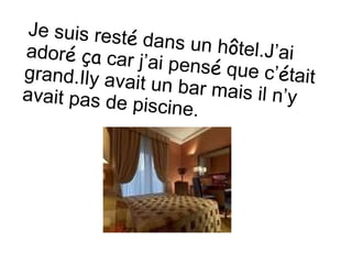 Je suis resté dans un h ô tel.J’ai ador é ça car j’ai pens é que c’ é tait grand.Ily avait un bar mais il n’y avait pas de piscine. - 3.
