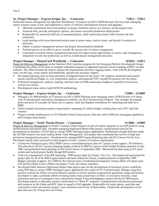 The document is a resume for Kevin J. Fox that summarizes his experience as a manager of IT services and project manager with over 10 years of experience. He has a track record of delivering technical solutions on time and under budget for large organizations. His skills include strategic planning, vendor management, project management, sales support, and leading teams. His most recent experience is as a senior project manager at MedAssets where he manages development teams and completes projects on time.