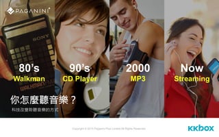 文档讨论了现代音乐消费如何受到科技影响,强调了在线音乐流媒体平台在年轻消费者中的主流地位。特别提到KKBOX,作为亚洲领先的流媒体音乐平台,拥有多达2000万首曲目和超过1000万注册用户。文档还展示了KKBOX如何通过音乐增强品牌与消费者的联系,以及其在各类广告和合作方面的成功案例.