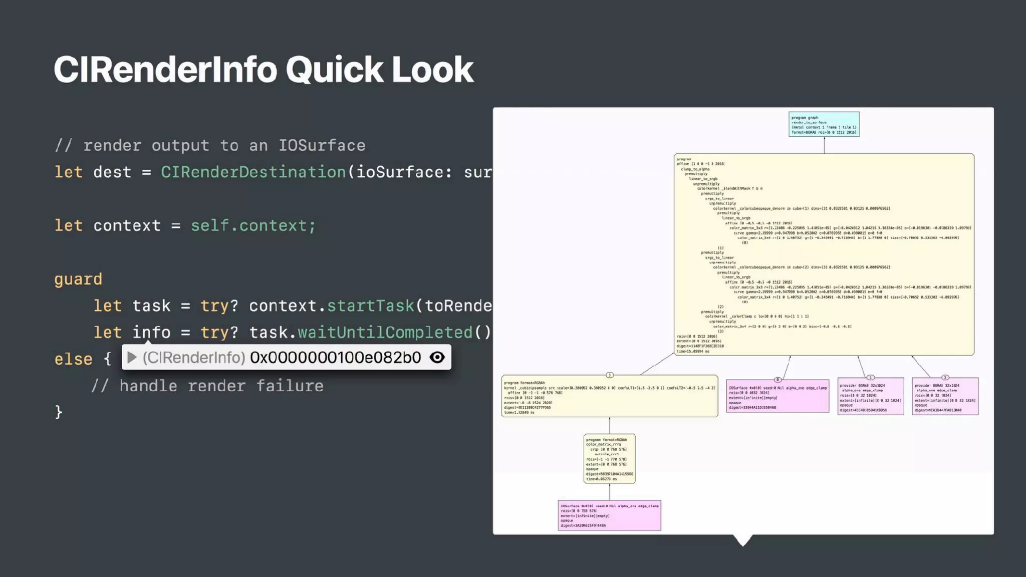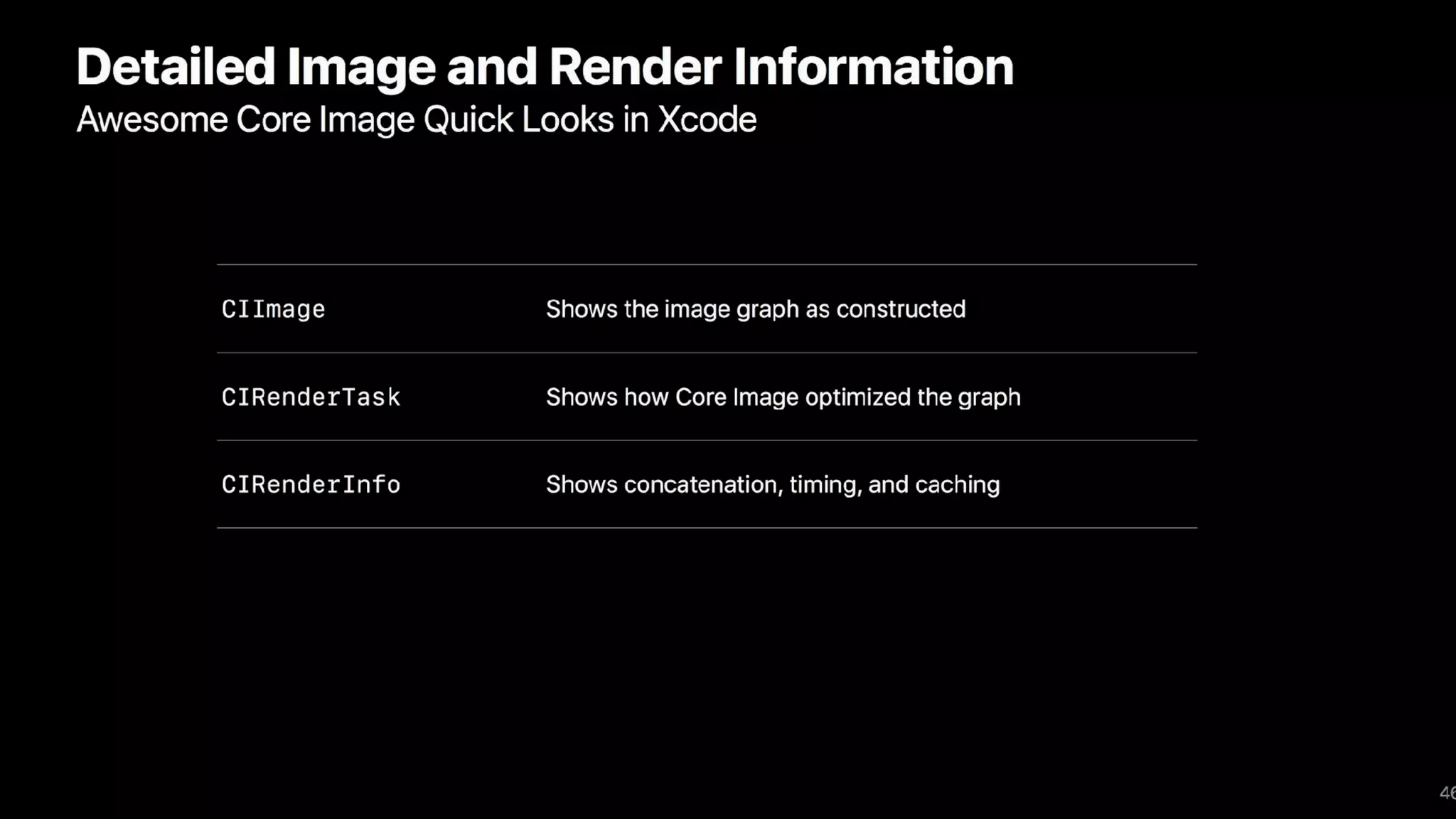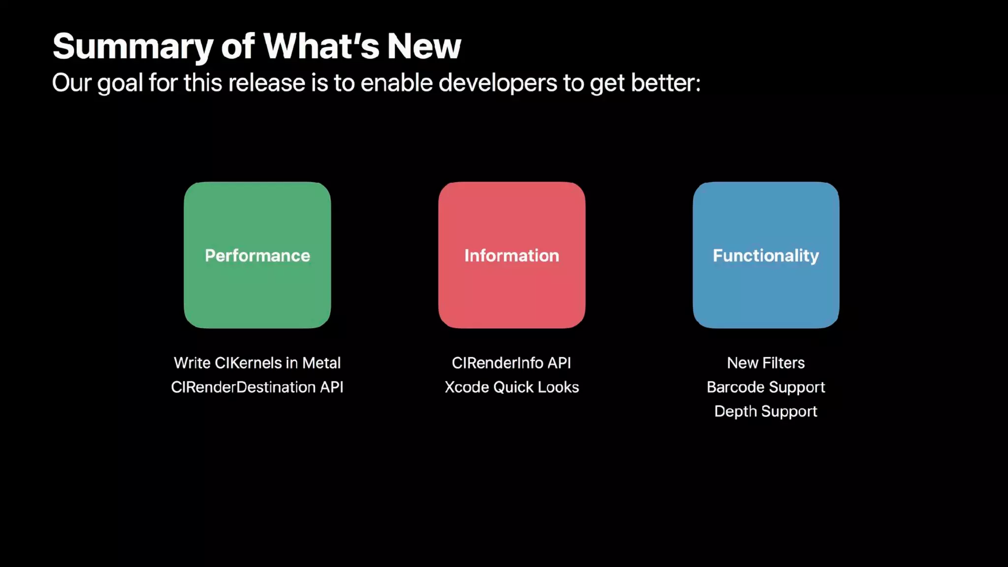 This document provides an overview of Core Image and its new features in iOS 12, including new built-in filters, integration with Metal for improved performance, new CIBarCodeDescriptor API, using Core Image with Vision framework, and a breakdown of the 196 built-in filters. The presentation concludes with a question and answer section.