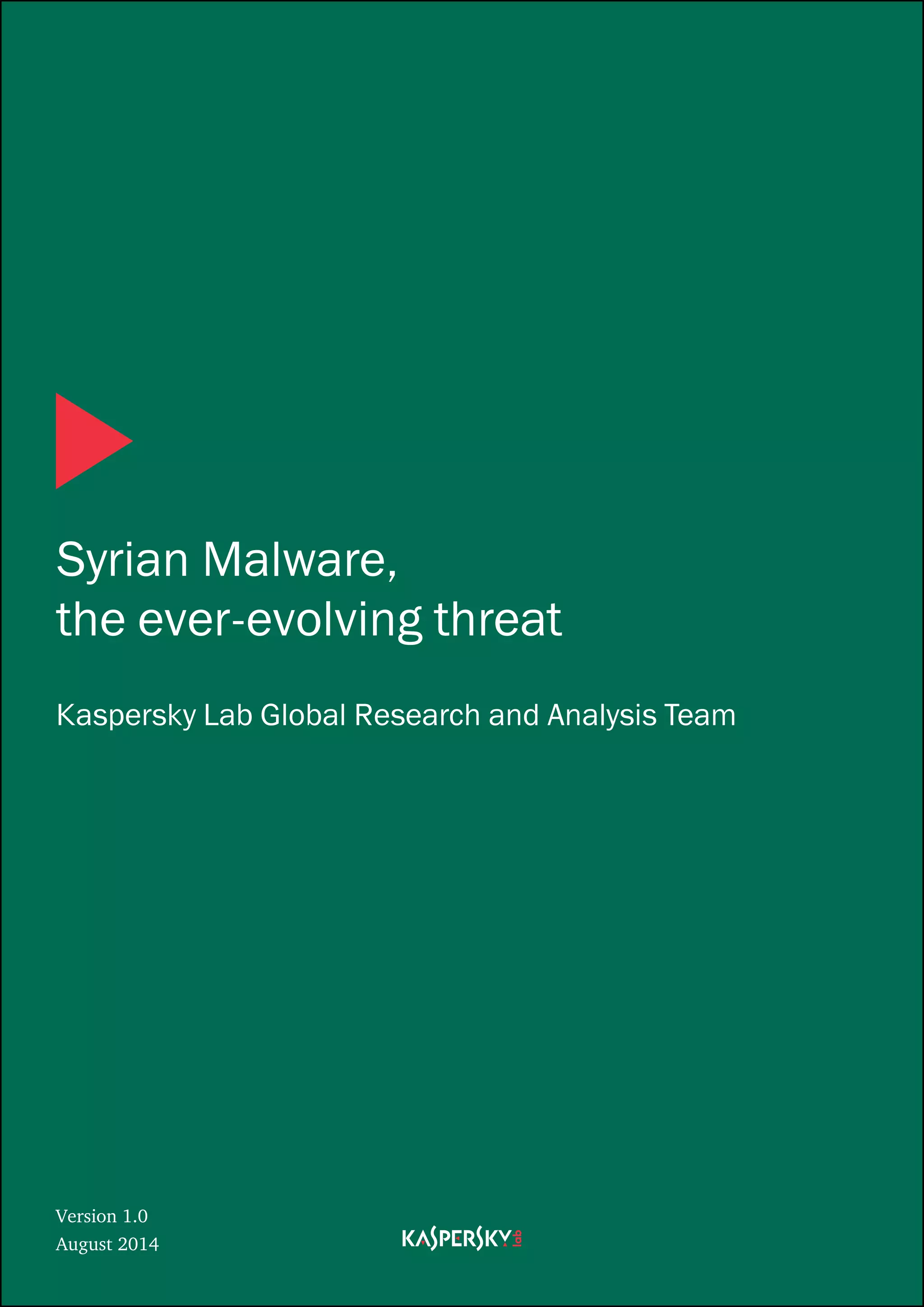 This document summarizes a report by Kaspersky Lab on evolving malware attacks originating in Syria. Malicious actors are using social engineering techniques like Skype messages, Facebook posts, and YouTube videos to distribute malware disguised as security programs. The malware payloads identified include remote access Trojans (RATs) like ShadowTech RAT and Dark Comet RAT. Over 100 malware samples have been found targeting activists and others in Syria, Lebanon, Turkey and other countries. The actors operate from locations including Syria, Russia, and Lebanon, and are constantly evolving their methods.