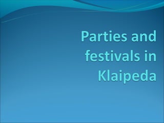 Klaipėda is the third largest city in Lithuania with a population of 203,269. It is located near the Dane River, Kuršiai Lagoon, and Baltic Sea. The city has a long history and is Lithuania's largest transport hub, with important sea and land routes. Klaipėda hosts numerous cultural festivals and events throughout the year, including an annual Sea Festival and Tall Ships Regatta, as well as basketball tournaments and celebrations of holidays like Joninės and the Assumption of Mary.