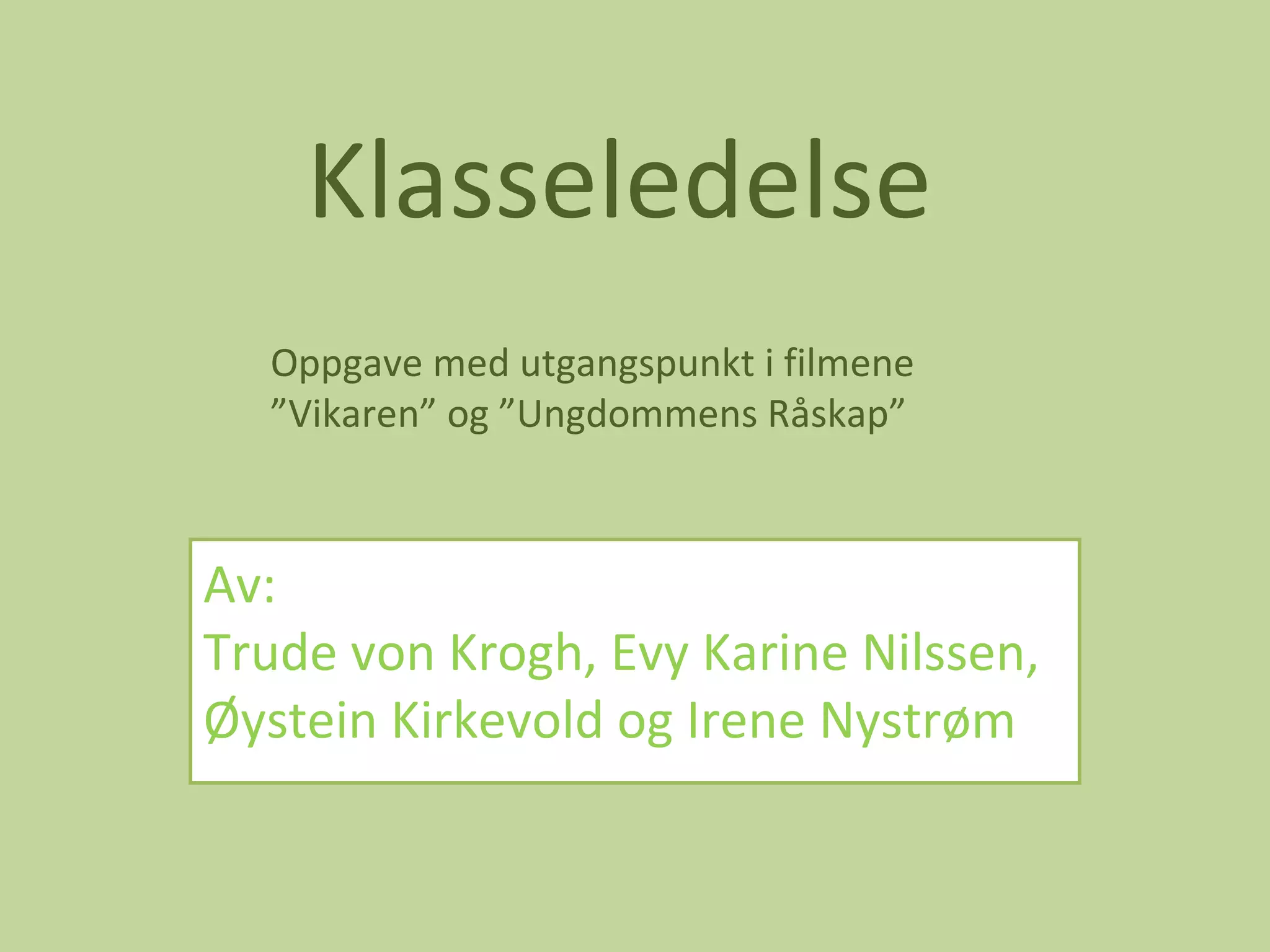 Klasseledelse Av: Trudevon Krogh, Evy Karine Nilssen, Øystein Kirkevold og Irene Nystrøm Oppgave med utgangspunkt i filmene ”Vikaren” og ”Ungdommens Råskap”