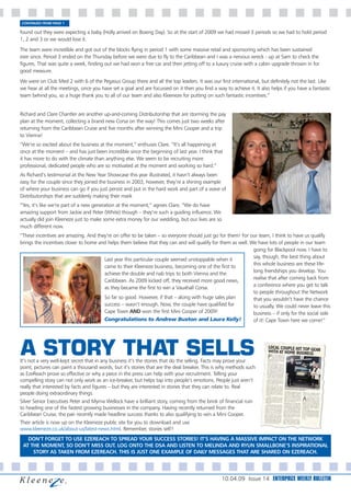 This bulletin discusses the struggling car industry and how Kleeneze is giving away cars as incentives despite the recession. It profiles two distributorships, Jack Kirby and Chantelle Molloy and Richard and Clare Chantler, who each recently qualified for and won a new Vauxhall Corsa. It discusses their journeys to achieving this goal and how the incentives motivate their teams. It also mentions another distributorship, Andrew Buxton and Laura Kelly, who have had continuing success qualifying for incentives including trips to Vienna and the Caribbean and winning the first Mini Cooper of 2009.