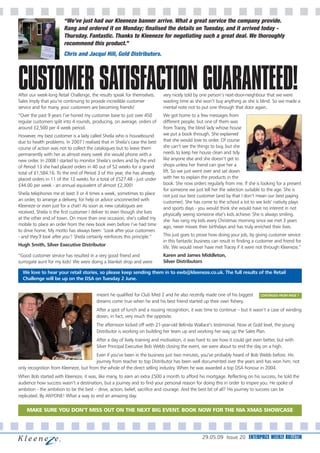 3) A story from distributors Angela and Paul McGuinness about how they achieved Gold Distributor status within 8 weeks of joining Kleeneze.