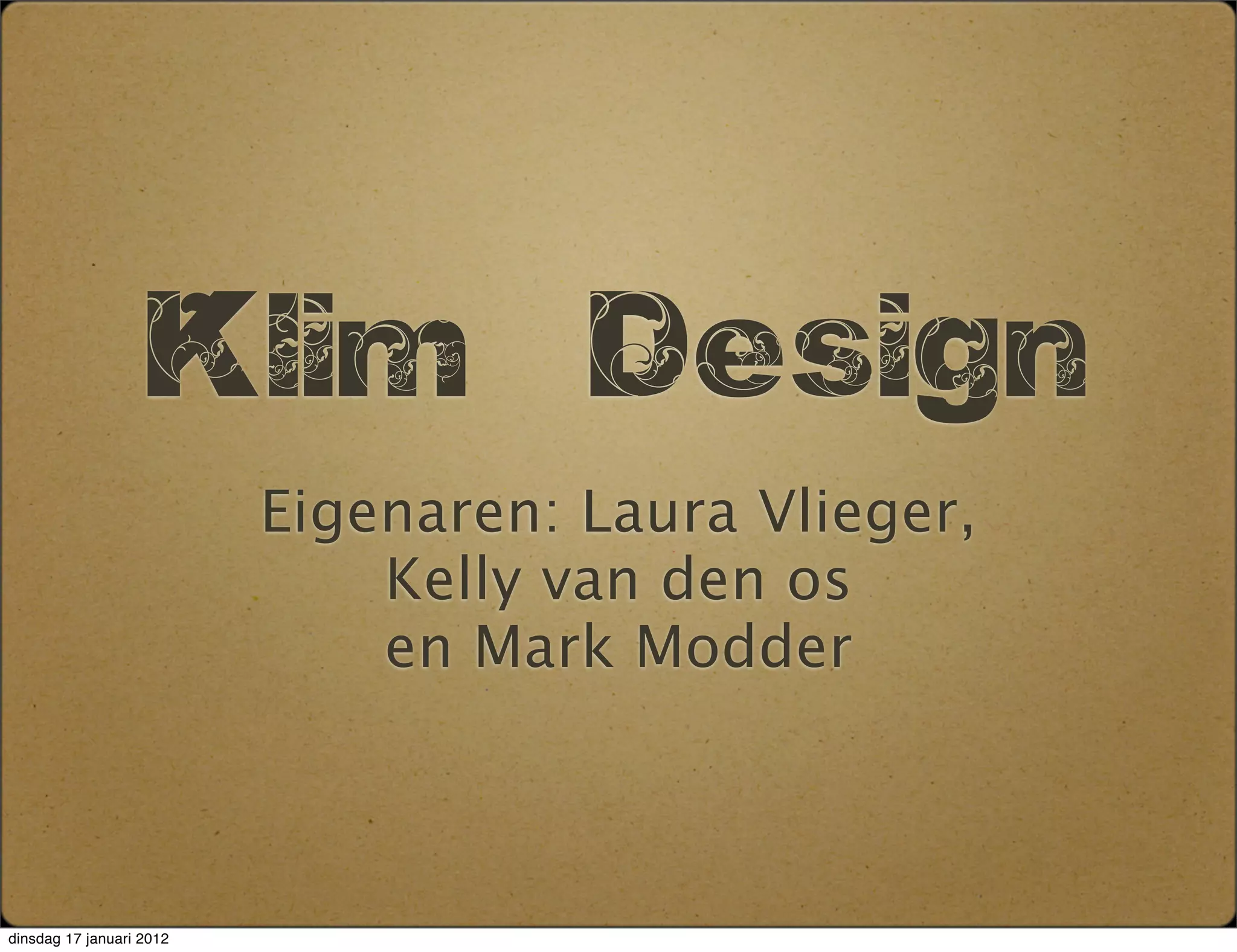 Design Eigenaren: Laura Vlieger, Kelly van den os en Mark Modder dinsdag 17 januari 2012