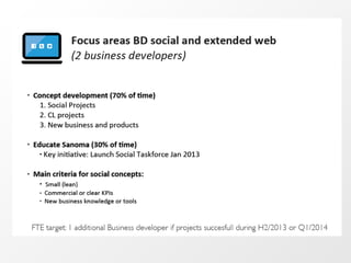3. Plans for 2013 included setting a social media roadmap, testing new concepts like a 'Big Data' showcase for third parties, and exploring responsive website development.