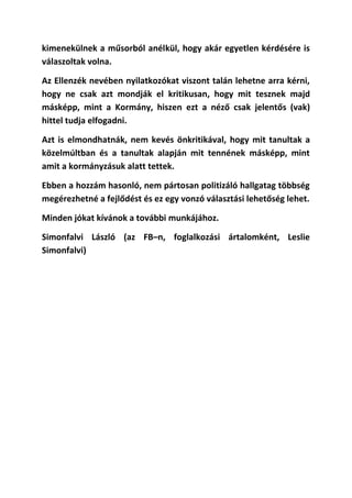 Az Ellenzék nevében nyilatkozókat viszont talán lehetne arra kérni,