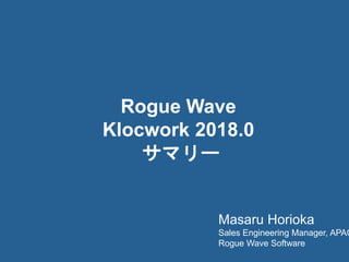 Wave Software, Inc. All Rights Reserved. 2 Rogue Wave Klocwork 2018.0 サマリー Masaru Horioka Sales Engineering Manager, APAC Rogue Wave Software