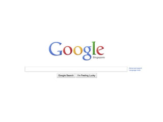 The document provides an overview of Google advertising tools for federal agencies. It discusses how online search has become one of the most popular online activities, with over 1 billion searches per day on Google. It then covers the basics of Google AdWords, including how keyword advertising works and how to set up an effective AdWords campaign through 5 steps: selecting keywords, account structure, targeting ads, writing ad text, and selecting landing pages. The document concludes by introducing some free Google tools that can help agencies further with tasks like identifying consumer trends, researching audiences, and evaluating campaign success.