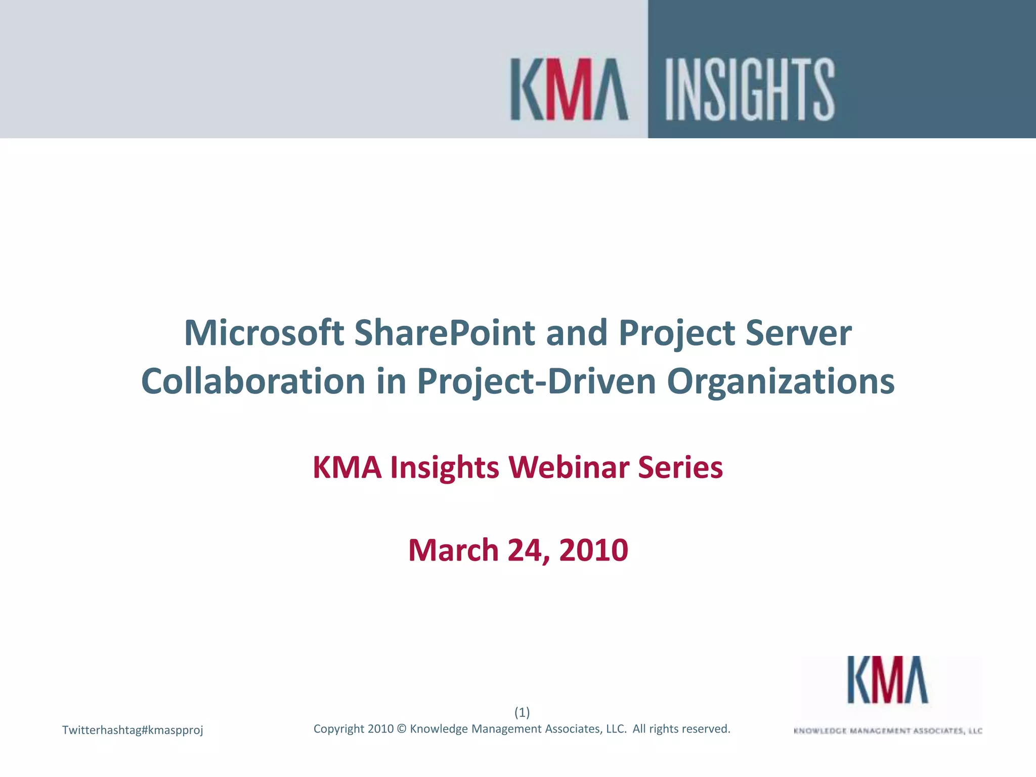 The document outlines a webinar discussing Microsoft SharePoint and Project Server's roles in enhancing project management for organizations. Key topics include best practices for utilizing SharePoint and Project Server together, upcoming features in SharePoint 2010, and enterprise project management strategies. It also highlights various integration options, workflows, and resource management improvements for project-driven organizations.