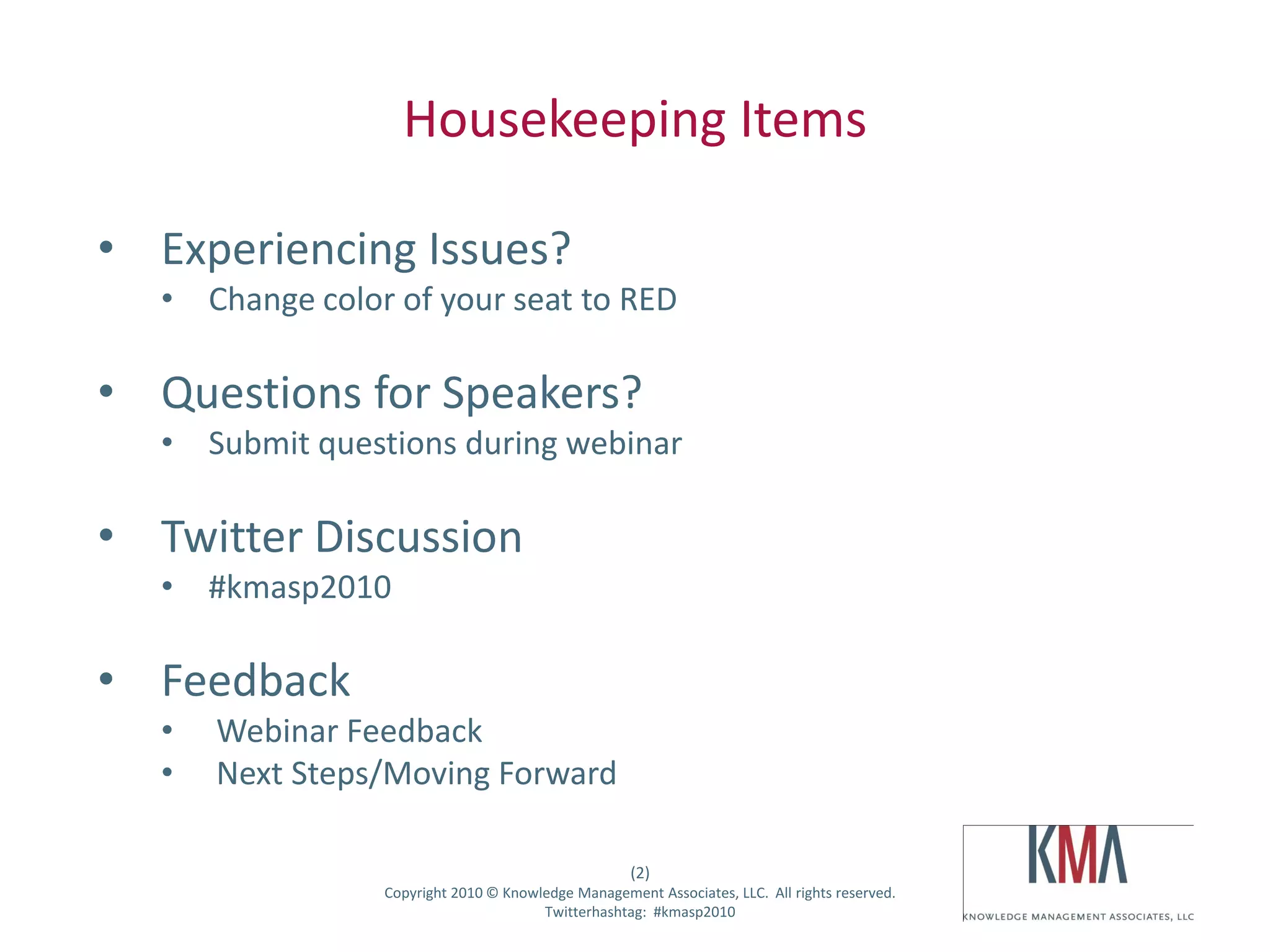 The webinar held on November 17, 2010, focused on creating social enterprises using SharePoint 2010, highlighting its social capabilities and the business value of social computing. Key topics included the definition of social enterprises, the importance of social computing for collaboration and efficiency, and an overview of SharePoint 2010's features and resources. The session concluded with a Q&A and information on future webinars and resources for further learning.