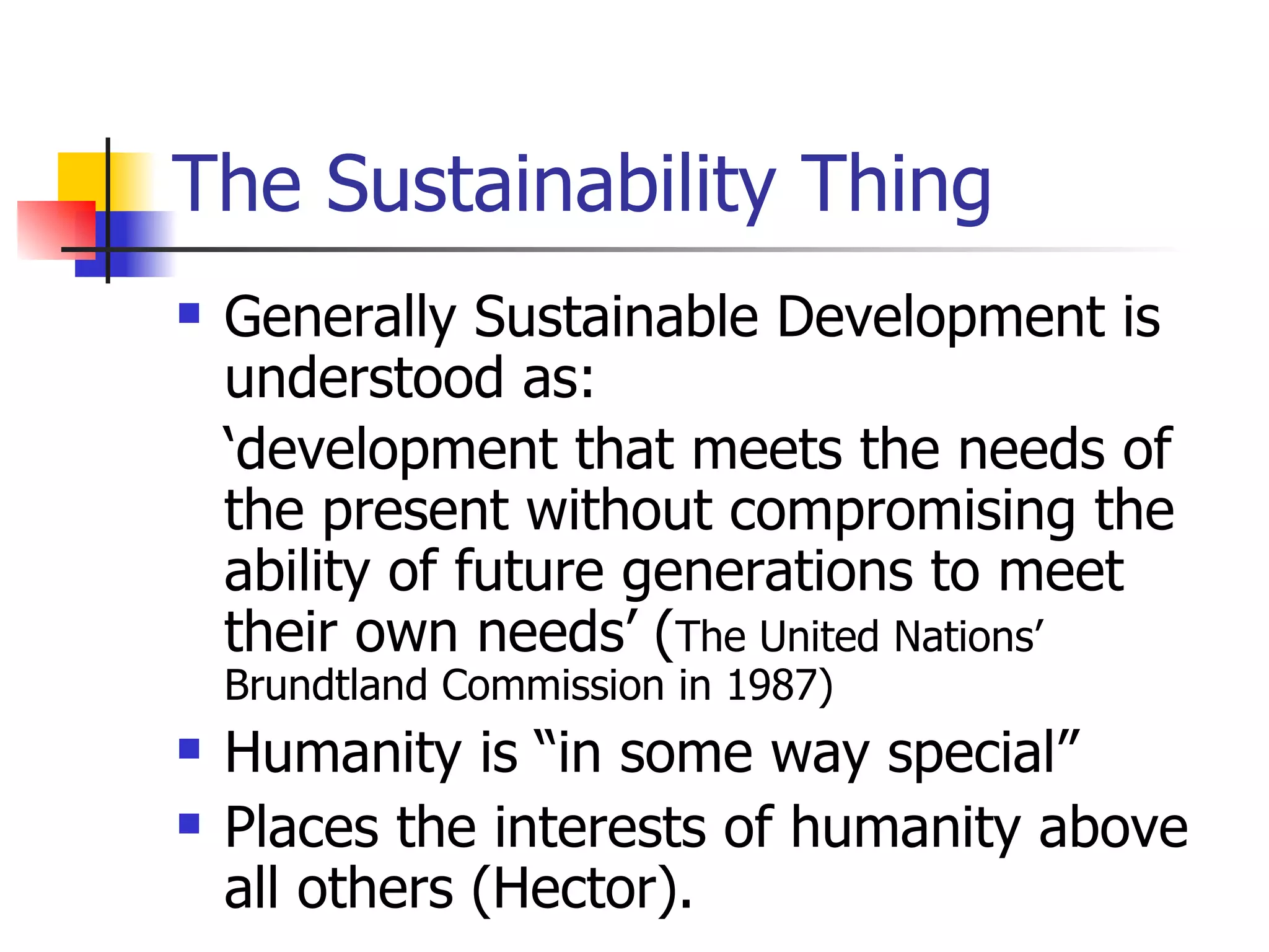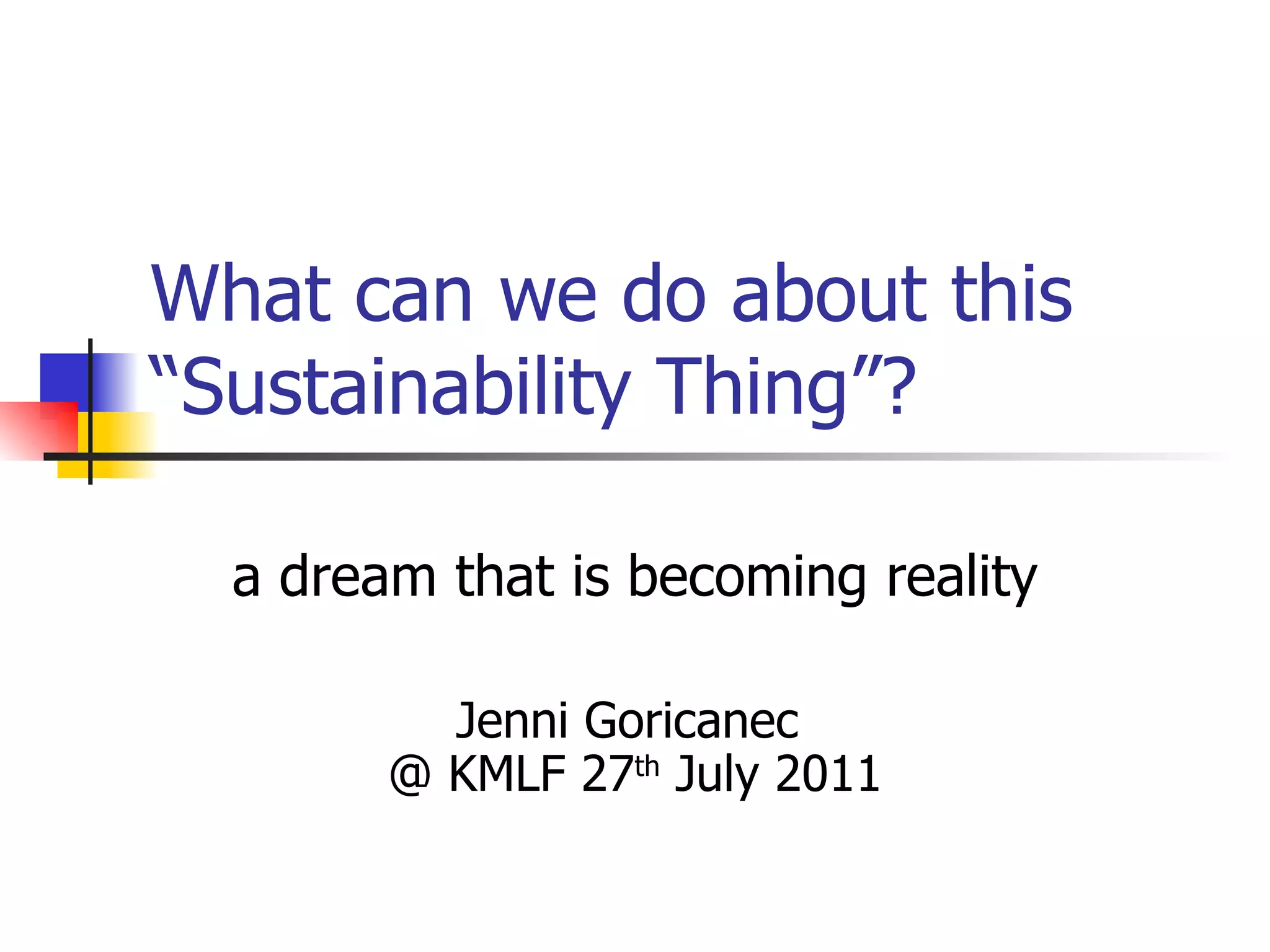 The document discusses the concept of sustainability and sustainable development. It defines sustainability as meeting present needs without compromising future generations' ability to meet their own needs. It also discusses approaches like the triple bottom line and deep ecology. The document argues that humanity must operate in new ways inspired by nature to transform human industry. It notes the complex, interconnected nature of sustainability challenges and calls for deliberation beyond debate. It proposes a process of structured conversations to collectively dream of and work towards a more sustainable future.