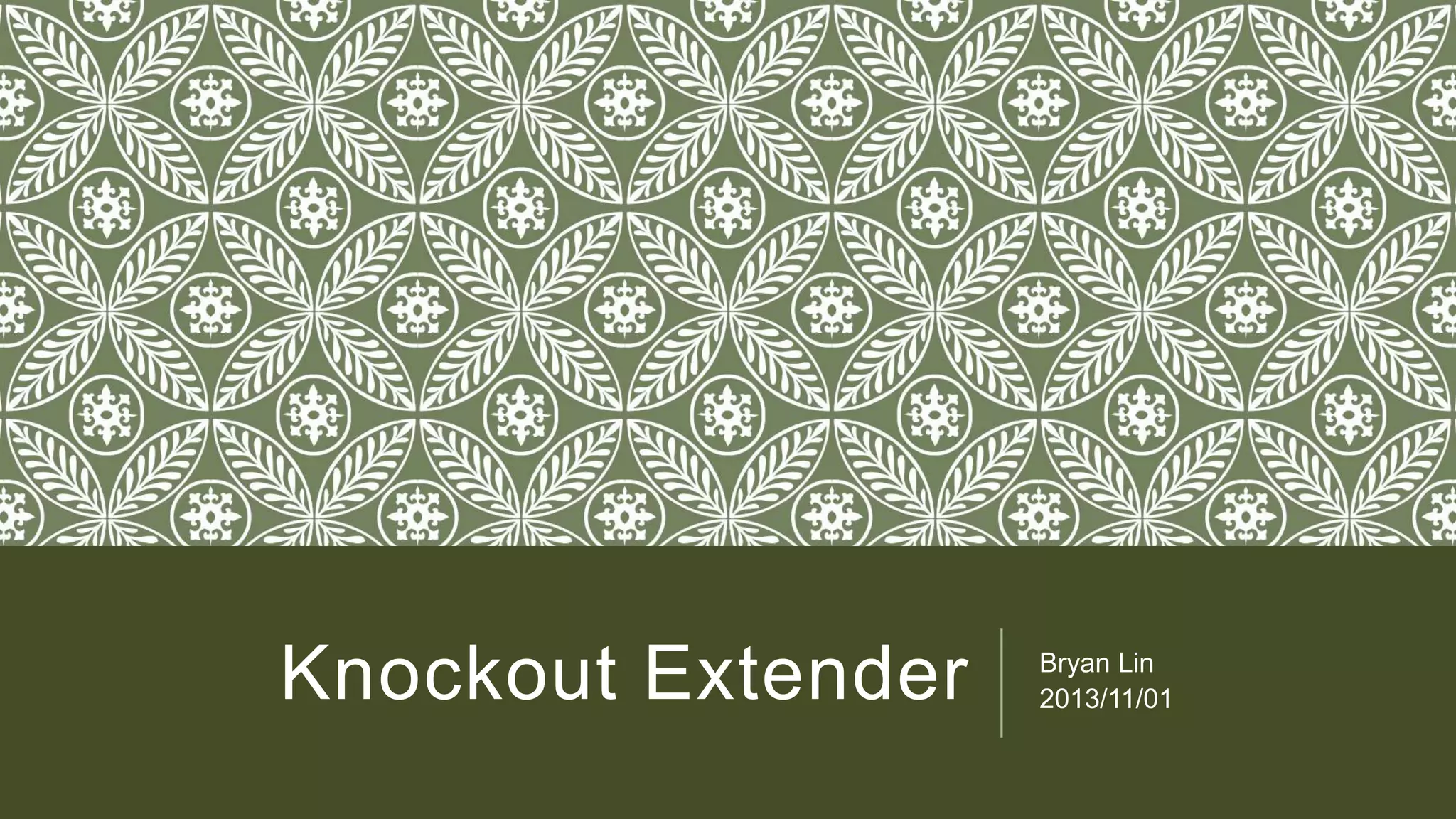 Knockout extenders allow observables to be augmented with additional functionality. An extender is a function that accepts the target observable and any options, and returns the extended observable. For example, a "logChange" extender could subscribe to the target and log value changes to the console. A "numeric" extender rounds values to a specified precision on write to the observable. Extenders make it possible to extend observables with common functionality in a reusable way.