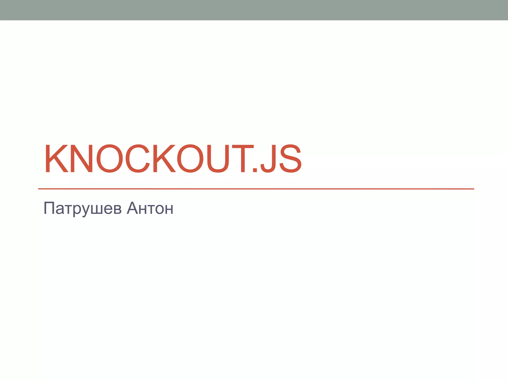 Документ представляет собой доклад о реактивном программировании и библиотеке knockout.js, подготовленный Антоном Патрушевым, CTO компании Noda. В докладе рассматриваются проблемы, возникающие при использовании традиционного JavaScript и jQuery, и рассказывается о преимуществах реактивного подхода и модели MVVM. Доклад включает примеры использования knockout.js для создания интерактивных веб-приложений и обсуждает его особенности, такие как подписка на события и отслеживание зависимостей.