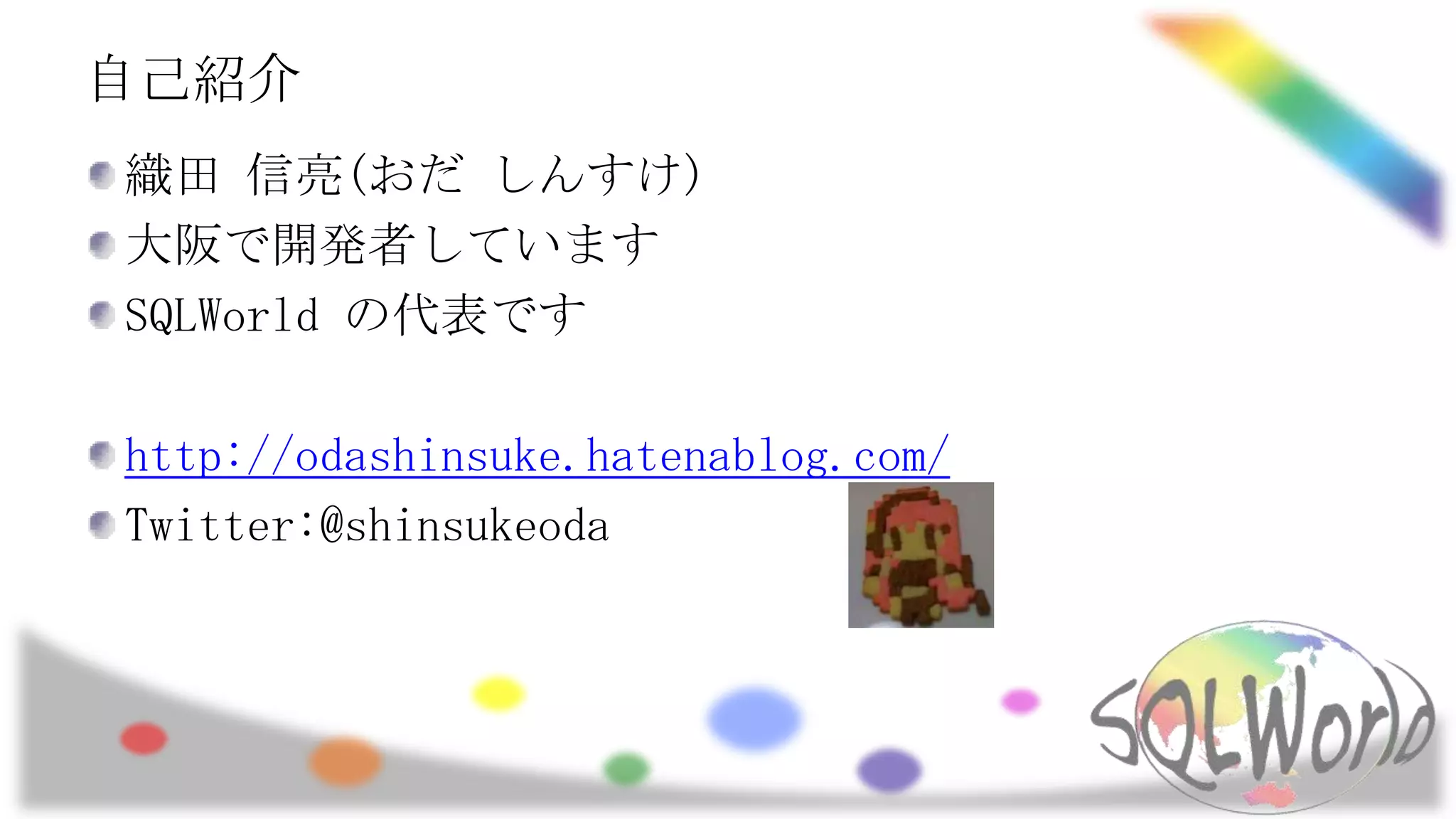 自己紹介 織田 信亮(おだ しんすけ) 大阪で開発者しています SQLWorld
