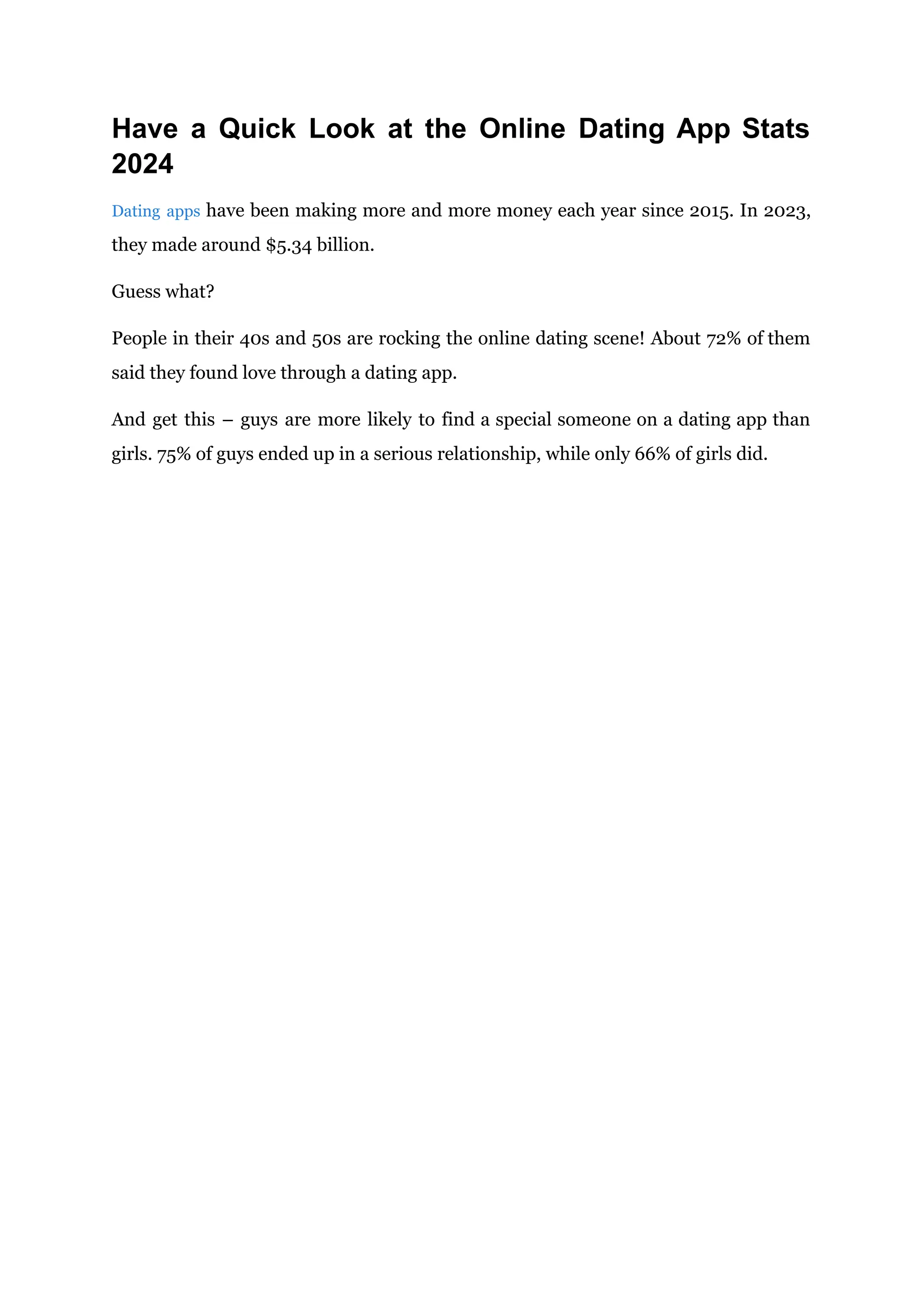 The document outlines essential steps for developing a dating app in 2024, emphasizing the importance of a unique concept, user experience, and safety features. It provides market insights, popular dating apps, and a detailed roadmap for development, including technology choices and monetization strategies. Additionally, it discusses costs associated with app development and highlights top players in the dating app industry.