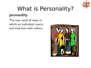 The document discusses personality types, primarily through the lens of the Myers-Briggs Type Indicator (MBTI), which categorizes individuals into 16 distinct types based on four dichotomies: introversion/extroversion, sensing/intuition, thinking/feeling, and judging/perceiving. It explores the nature of emotions, attitudes, conflict resolution strategies, and the functions of attitudes in guiding behavior and decision-making. Different personality types have unique traits and approaches to life and work, highlighting individual differences in perception and interaction with the world.