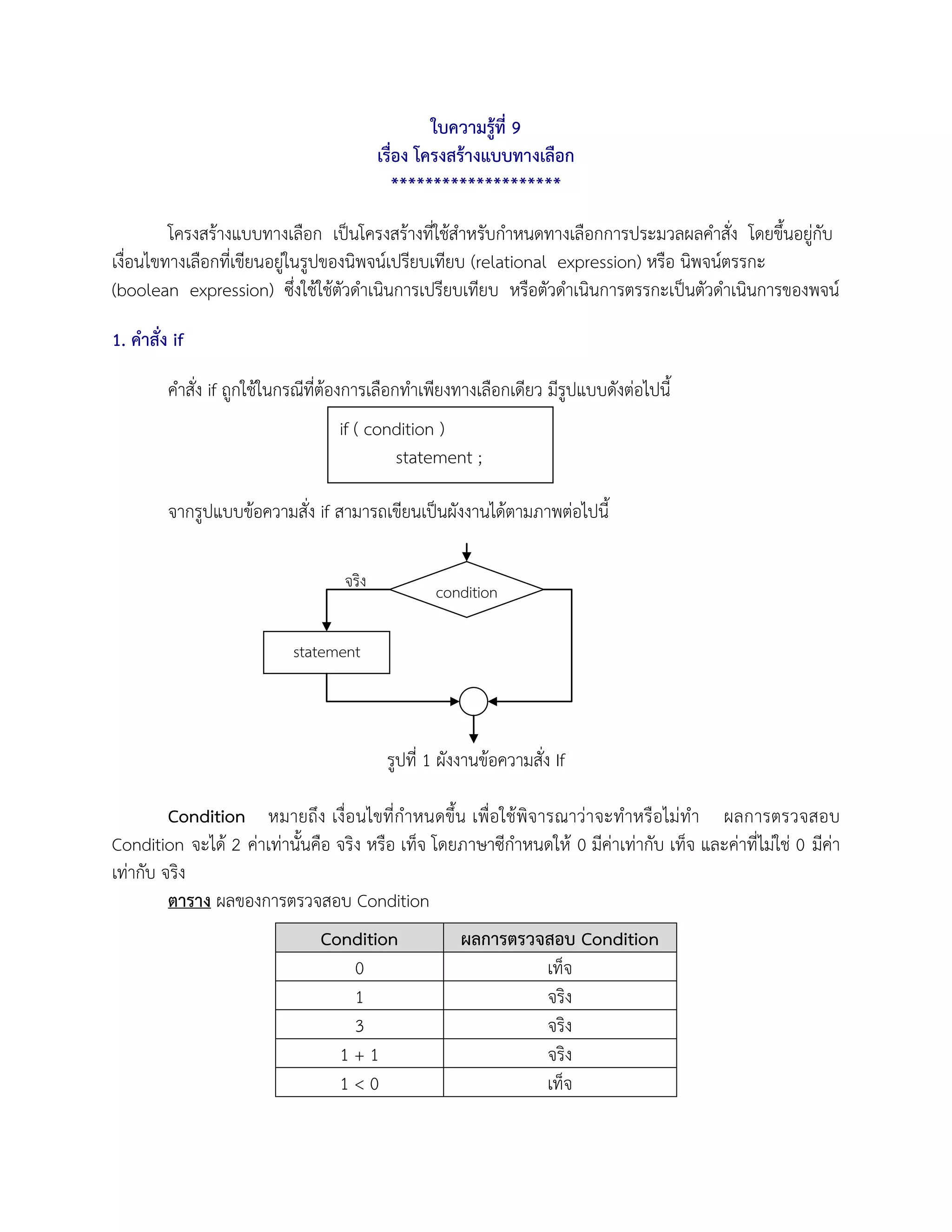 if ตัวสุดท้าย ถ้าผลที่ได้เป็นจริงก็จะทา Statement-N1 แต่ถ้าเป็นเท็จก็จะทา Statement-N2