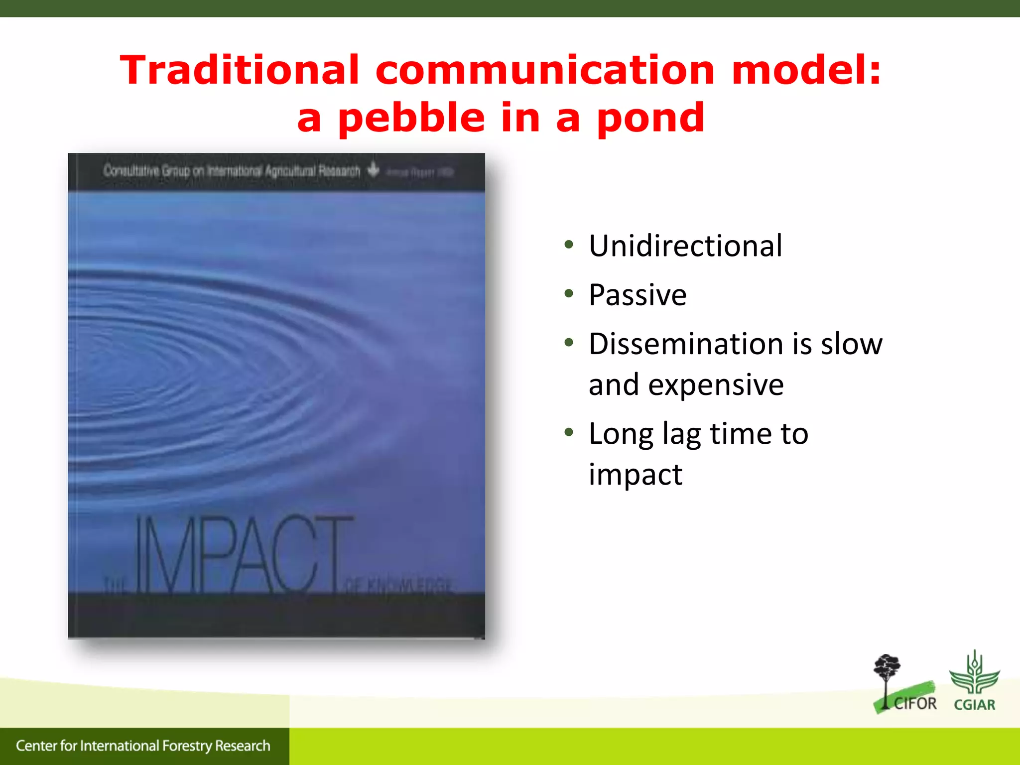 The document discusses the transition from a traditional unidirectional communication model to a more interactive web-based model enhanced by social media, enabling quicker dissemination of information and adaptation to user needs. It outlines the strategy for the Global Landscape Forum at the UNFCCC, emphasizing strategic partnerships, media presence, and community engagement to communicate the landscapes approach for future agreements. It highlights the challenges and opportunities in connecting various stakeholders and reaching new audiences in the context of sustainable development goals.