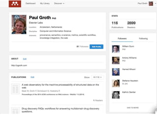The document discusses knowledge graphs in the context of a panel led by Paul Groth, the Disruptive Technology Director at Elsevier. It highlights the importance of entity-based search as a disruptive technology. The mention of the 2015 WWW industry panel suggests a focus on advancements in knowledge graph applications.