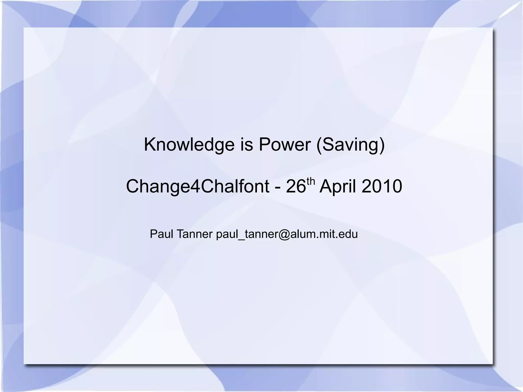 This document discusses ways for homeowners to save money on their utility bills through energy efficiency improvements and use of smart devices. It outlines steps individuals can take to monitor energy usage, identify energy vampires, improve insulation, utilize renewable energy sources, install smart thermostats and timers, and purchase devices to reduce power consumed by appliances in standby mode. The goal is to help homeowners save an additional 10% on their bills with no loss of comfort. Savings to date from previous efficiency efforts are estimated at £700.