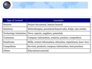 Knowledge management refers to systematically managing an organization's knowledge assets to create value and meet tactical and strategic goals. It involves initiatives, processes, strategies, and systems to store, assess, share, refine, and create knowledge. Key components of knowledge management include people, processes, information, and technology. The knowledge management life cycle includes capturing, organizing, refining, and transferring knowledge. Knowledge management systems support knowledge dissemination and application, while tools include knowledge portals, intranets, groupware, and data mining software. Knowledge professionals organize and distribute knowledge through repositories, search, and collaboration applications to enhance knowledge accessibility and quality.