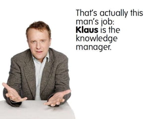 This document discusses knowledge management components and how information technology can help with knowledge management. It defines information technology and lists some of the most popular IT tools, including intranets. It explains that while IT is widely used in organizations and can help facilitate knowledge sharing, solely focusing on IT investments without also investing in human capital could be problematic. An example is provided of how IT allows for flexible work hours and virtual offices. The document concludes by thanking the reader for their attention.
