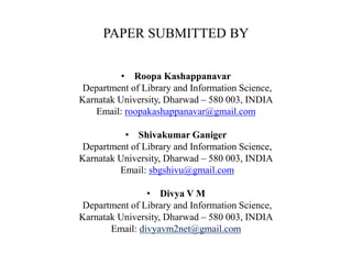 The document discusses the importance of Knowledge Organization Systems (KOS) in promoting rural development, emphasizing the role of knowledge sharing among various stakeholders, including farmers, NGOs, and service providers. It highlights the challenges of defining 'rural' and the necessity of human resources in agricultural contexts, while suggesting methods to improve digital access and resources. Future directions in KOS development focus on effective indexing and classification mechanisms to enhance accessibility and utility in rural development efforts.