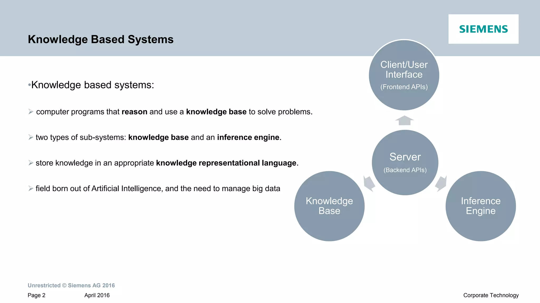 The document describes a framework for developing knowledge based systems. It discusses how knowledge can be captured from various sources like natural language, documents, and data files and represented in knowledge representation languages. It provides details on typical KBS architecture with separate knowledge base and inference engine components. Specific knowledge representation techniques discussed include propositional logic, first order logic, and using natural language processing to translate language to first order logic.