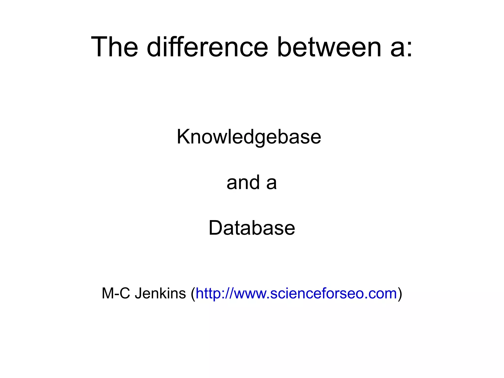 1. Knowledgebases capture human knowledge and place it in a system that can solve complex problems using that knowledge, while databases simply store and organize data.