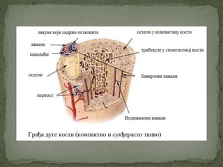 Кости, дуге ипљоснате, састоје се од две врсте коштаног