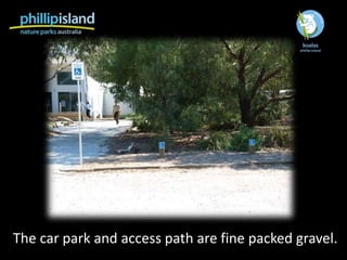 The Koala Conservation Centre allows visitors close access to koalas through wheelchair accessible facilities like ramps, paths, and boardwalks, as well as a visitor center with displays at wheelchair height.