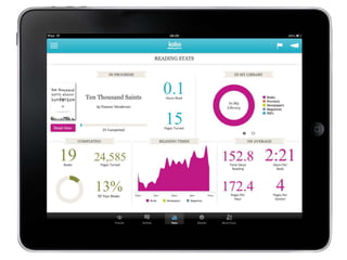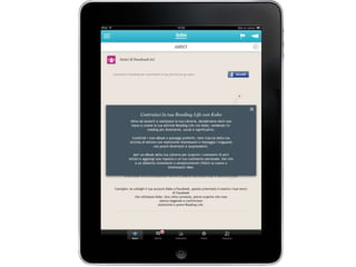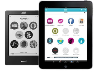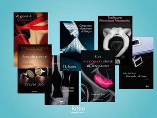 Il documento discute la crescita e la strategia di Kobo, evidenziando l'acquisizione di contenuti in 34 paesi e la varietà di lingue offerte. Viene sottolineata l'importanza della gestione dei prezzi e delle promozioni per rispondere alle diverse sensibilità di mercato, insieme all'uso dei metadati e social network per coinvolgere i lettori. Infine, si menzionano futuri sviluppi con nuovi paesi e dispositivi.
