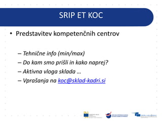 Predstavitev na informativnem dnevu o javnem razpisu za Strateška razvojno inovacijska partnerstva - SRIP in javnem razpisu za Kompetenčne centre za razvoj kadrov - KOC na prioritetnih področjih pametne specializacije