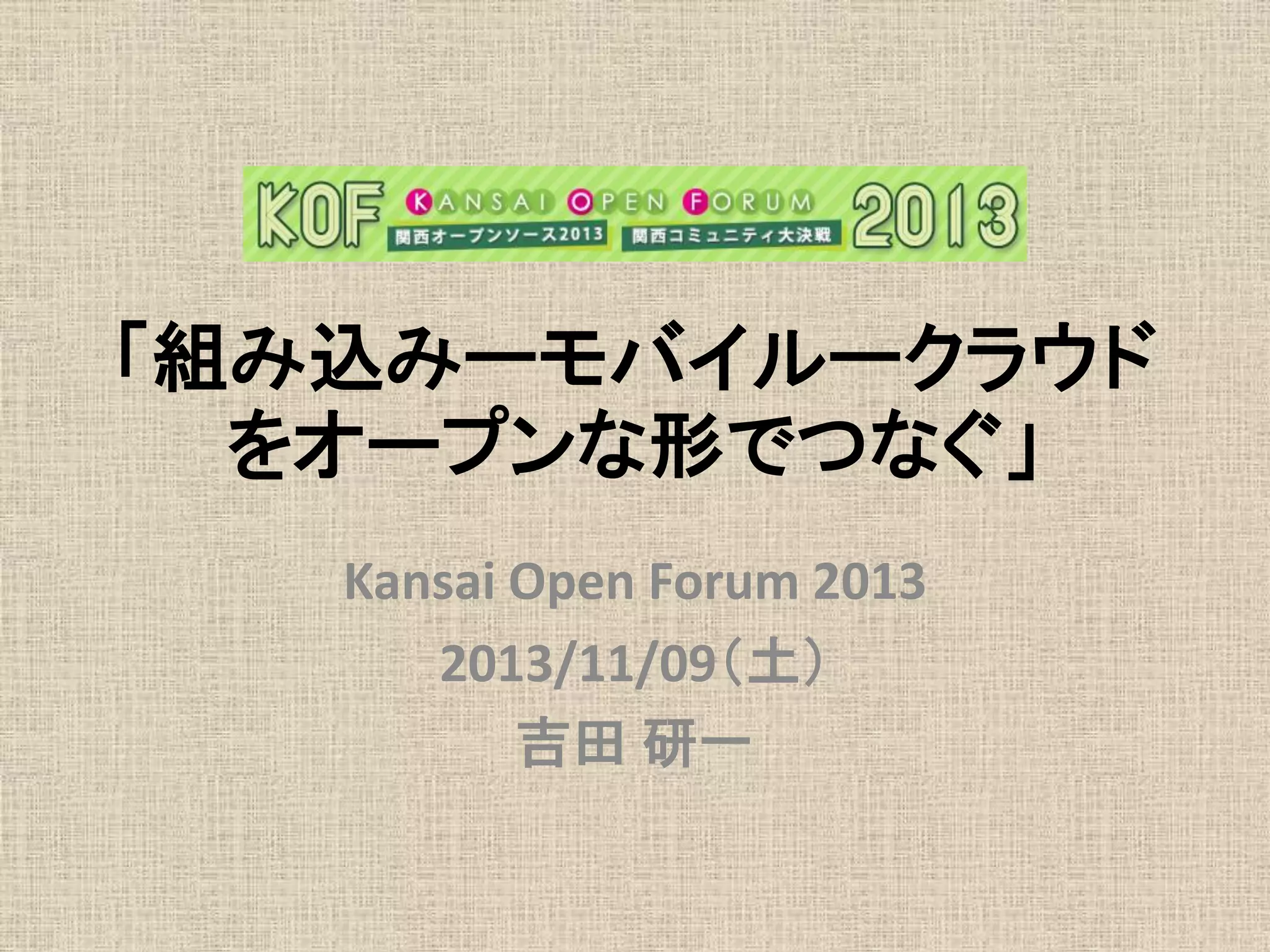 組み込みーモバイルークラウドをオープンな形でつなぐKOF2013