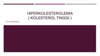 Hiperkolesterolemia adalah kondisi di mana kadar kolesterol dalam darah tinggi, yang dapat menyebabkan penyakit jantung, stroke, dan hipertensi. Penyebabnya termasuk pola makan tidak sehat, kurang aktivitas fisik, dan faktor usia. Pencegahan meliputi konsumsi lemak sehat, olahraga teratur, dan menghindari rokok serta alkohol.