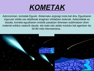 Astronomian, kometak Eguzki -Sistemako argizagi mota bat dira, Eguzkiaren
