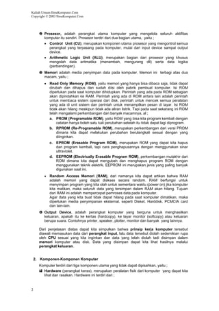 Teks tersebut merupakan tutorial tentang komputer dan komponennya. Ringkasannya adalah: