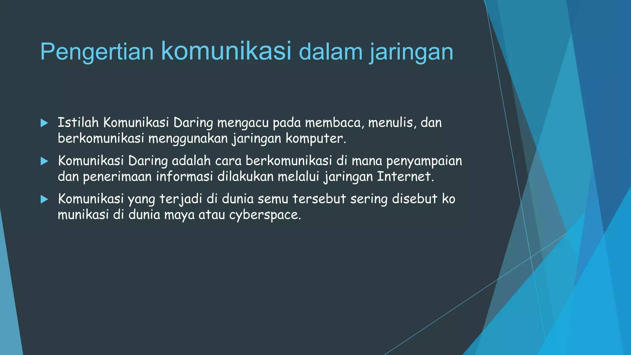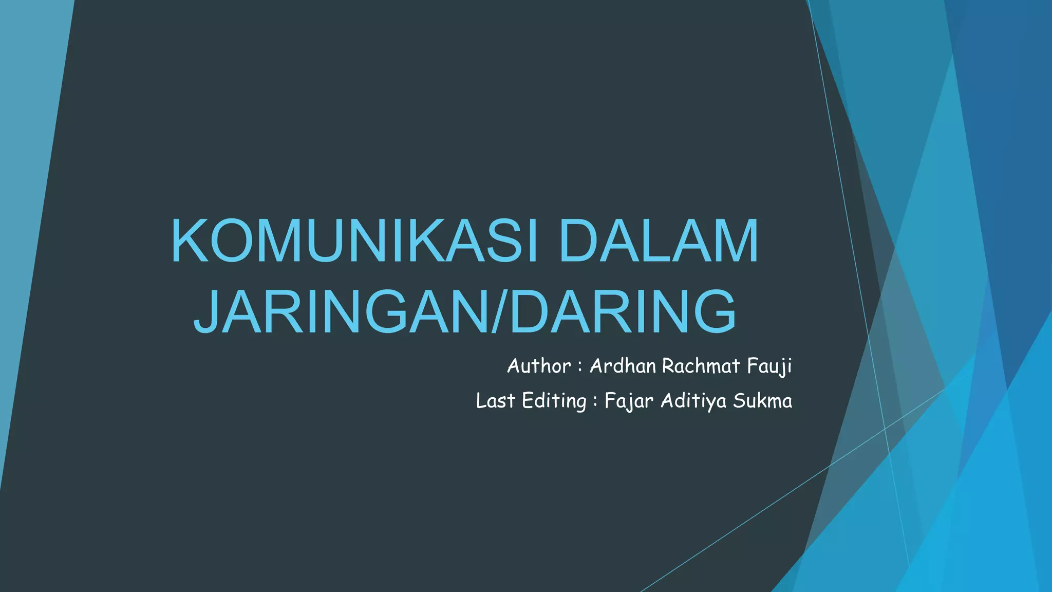 Komunikasi daring adalah komunikasi melalui jaringan komputer yang dapat berupa sinkron seperti chat atau video call, atau asinkron seperti email. Tujuannya antara lain berbagi sumber daya, mengirim data, dan berkomunikasi. Fungsinya meliputi dapat dilakukan kapan saja, efisien, dan terintegrasi dengan layanan TIK lain. Komponennya terdiri dari perangkat keras, perangkat lunak, dan pengguna.